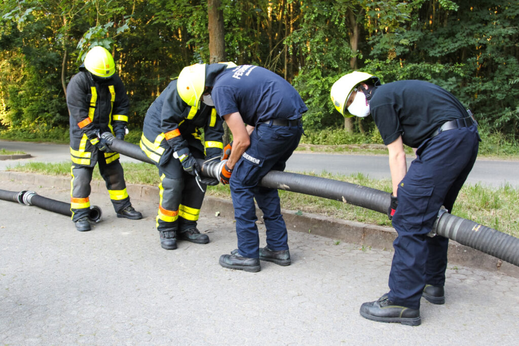Am vergangenen Donnerstag nutzte die Einsatzabteilung das sommerliche Wetter zu einer Übung mit dem Thema „Wasserentnahme aus offenem Gewässer“. Geübt wurde am Sportplatz der TSG, die Wasserentnahmestelle war unser Erlenbach. Trotz Übungspause hat alles noch gut funktioniert und das Erlenbach-Wasser floss nach Aufbau der Entnahmevorrichtung mittels Saugschlauch durch unsere Schläuche.