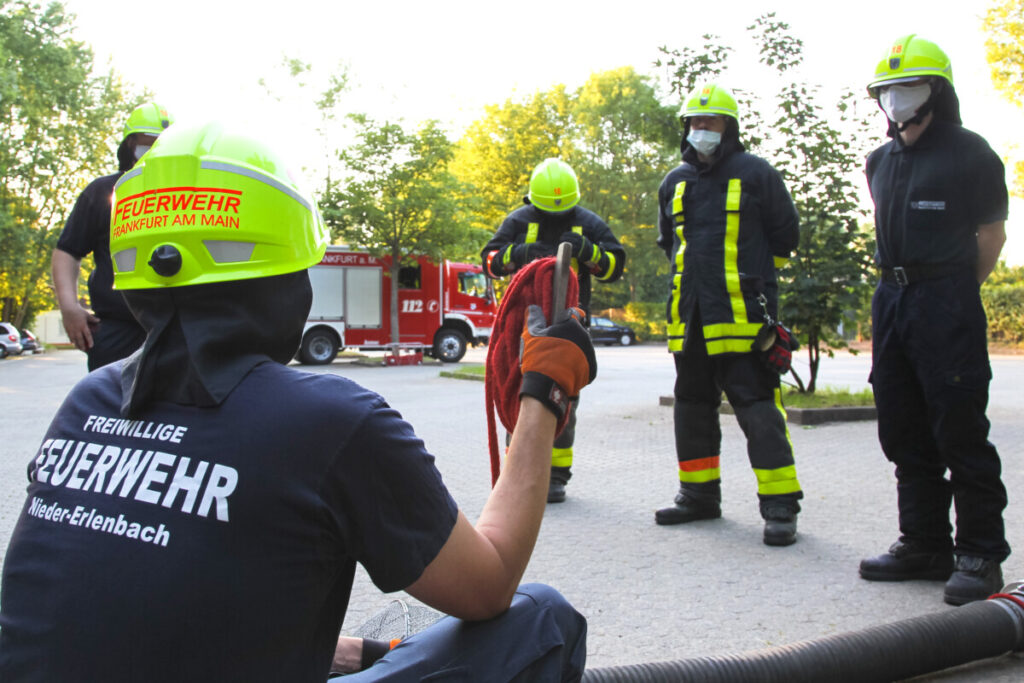 Eine Premiere war dabei die Verwendung unseres nagelneuen, wenn auch schon 30 Jahre alten Löschfahrzeugs für diese Aufgabe, das uns im Mai von der Freiwilligen Feuerwehr Ginnheim übergeben wurde. Dieses LF 8 ersetzt das bislang bei uns stationierte LF 16-TS des Katastrophenschutzes.