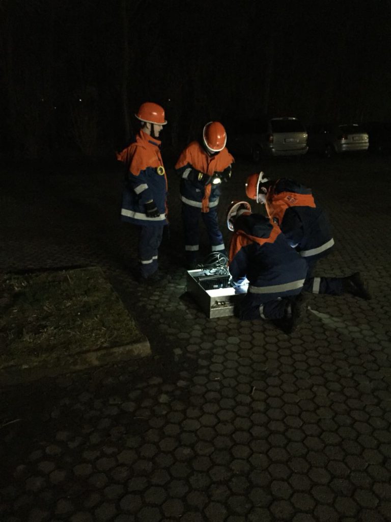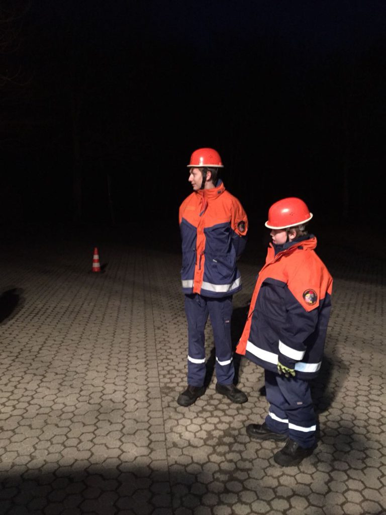 Eine Stunde später traf sich unsere Jugendfeuerwehr. Auf dem Ausbildungsplan stand das Thema „Absichern und Ausleuchten von Einsatzstellen“. Unsere Nachwuchs-Brandschützer verließen zur Übung das Feuerwehrhaus und bauten in der Dämmerung und später in der Dunkelheit Absicherungen auf. Die Einsatzstellen wurden dann anschließend mit den zur Verfügung stehenden Einsatzmitteln ausgeleuchtet.