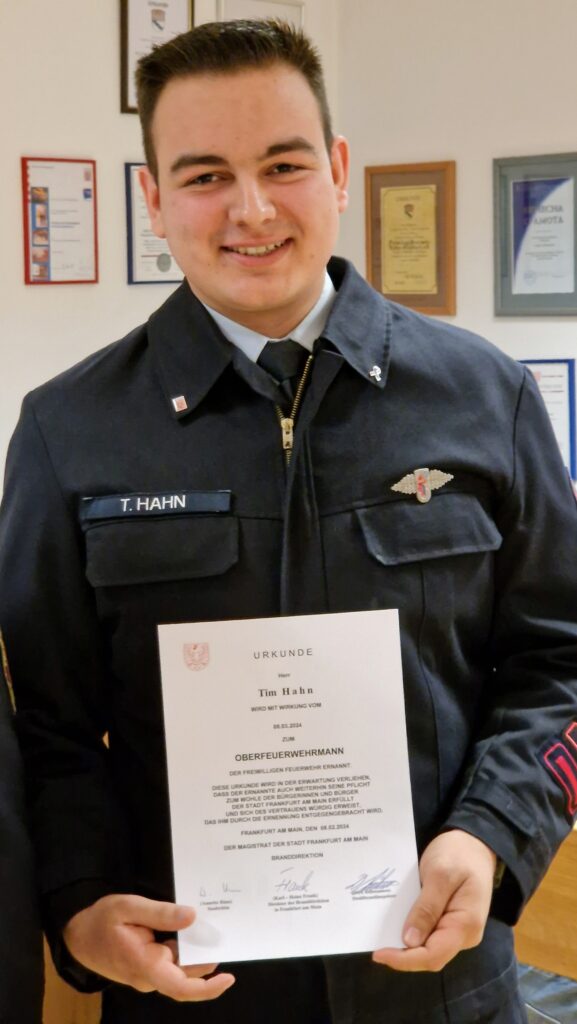 Unser Jugendwart Tim Hahn berichtete, dass sich aktuell acht Jugendliche in der Jugendfeuerwehr engagieren und im letzten Jahr ein Kind aus der Minifeuerwehr dazugestoßen ist. Im Jahr 2023 führte die Jugendfeuerwehr mehrere spannende Aktionen durch, einschließlich des traditionellen Besuchs der Eissporthalle mit anderen Jugendfeuerwehren aus Frankfurt, eines Aktionstags auf dem Roßmarkt im April sowie einer gemeinsamen Übung mit der Einsatzabteilung im Mai.