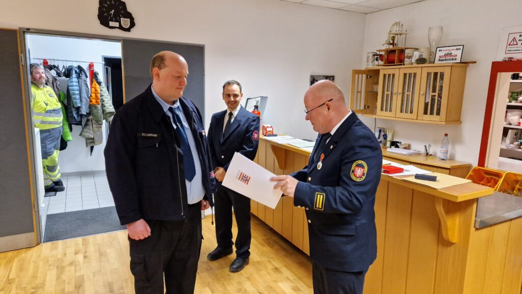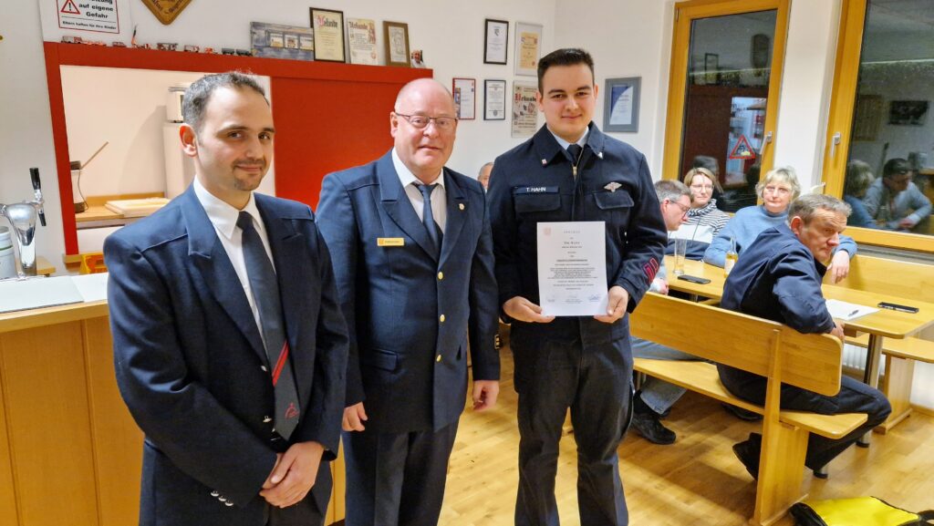 Tim Hahn bedankte sich auch im Namen seines Stellvertreters Johannes Bindriem bei der Wehrführung und weiteren Kameradinnen und Kameraden für die Unterstützung.