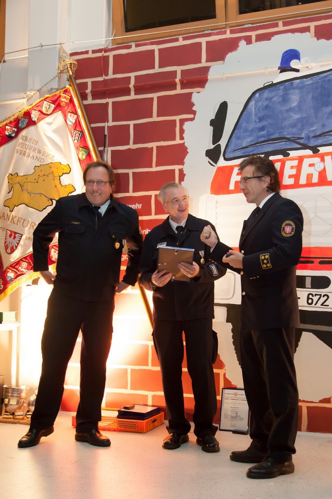 Am Freitag, 08.11.2013, hatte der Kreisfeuerwehrverband Frankfurt am Main wie schon in den vergangenen Jahren nach Nieder-Erlenbach eingeladen, um verdiente Feuerwehrleute zu ehren. In diesem Jahr standen einige besondere Ehrungen an, weswegen Stadtbrandinspektor Peter Kraft neben seinen beiden Stellvertretern Gunter Renner und Dirk Rübesamen sowie KFV-Pressesprecher Markus Heuser auch der Amtsleiter der Branddirektion, Professor Reinhard Ries und der hessische Innenminister Boris Rhein zur Seite standen.