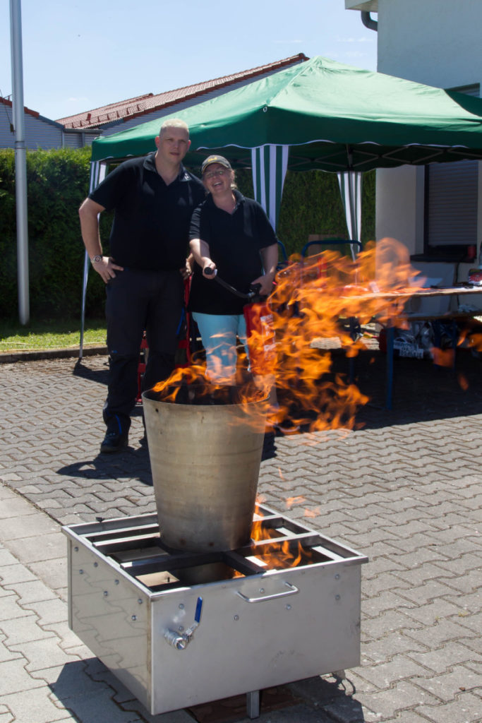 Wir freuen uns sehr, dass wir in diesem Jahr trotz weiterer großer Veranstaltungen in der Region so viele Nieder-Erlenbacher und Gäste von weiter her begrüssen konnten. Die Kinder tobten sich wie in jedem Jahr auf der Hüpfburg und der Rollenrutsche aus und saßen schon in den bereitstehenden Feuerwehrfahrzeugen probe. Beim Team vom Crash Instructor wurde mit den bereitgestellten Feuerlöschern ordentlich geübt, wie man kleinere Brände damit bekämpfen kann.