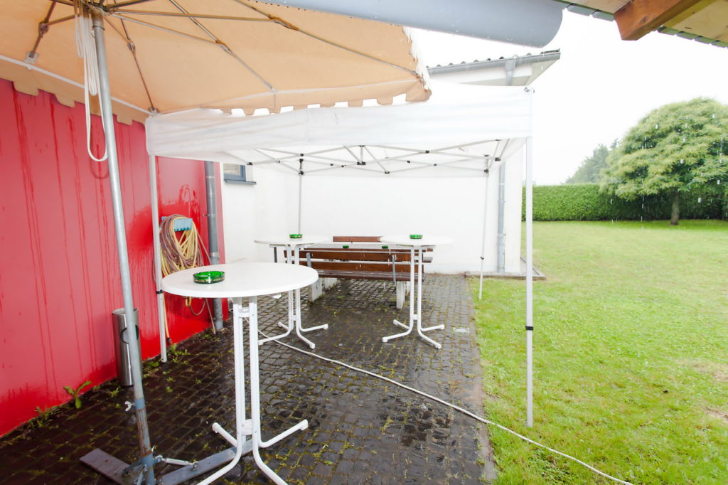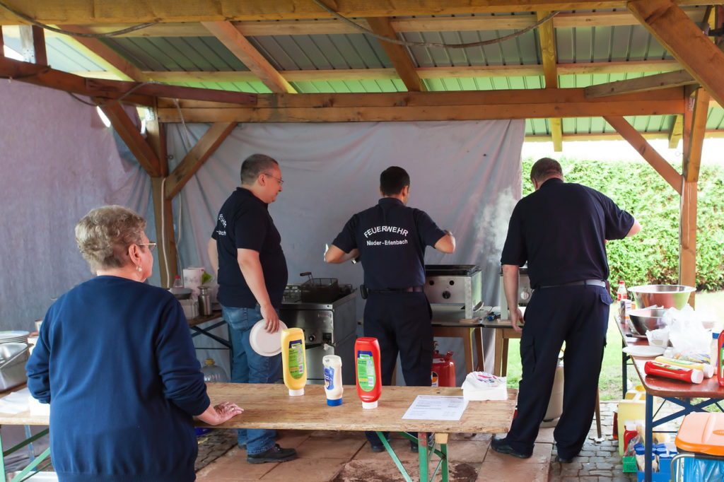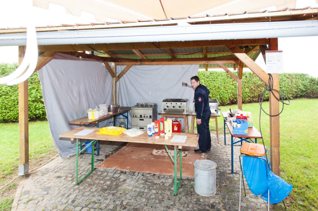 Schon in den Tagen vor dem Fest verfolgten wir die Wettervorhersagen sehr genau. In stetem Wechsel prognostizierten diese einen kompletten Regentag, Gewitter am Mittag, vielleicht doch mal eine Phase mit Sonne oder zumindest ohne Regen. Wer morgens um 5:30 Uhr bereits auf den Beinen war, dem schwante nichts Gutes. Denn da setzte ein ziemlich heftiger Starkregen ein, der in den kommenden Stunden Nieder-Erlenbach mit 35 Litern Wasser pro Quadratmeter versorgte.