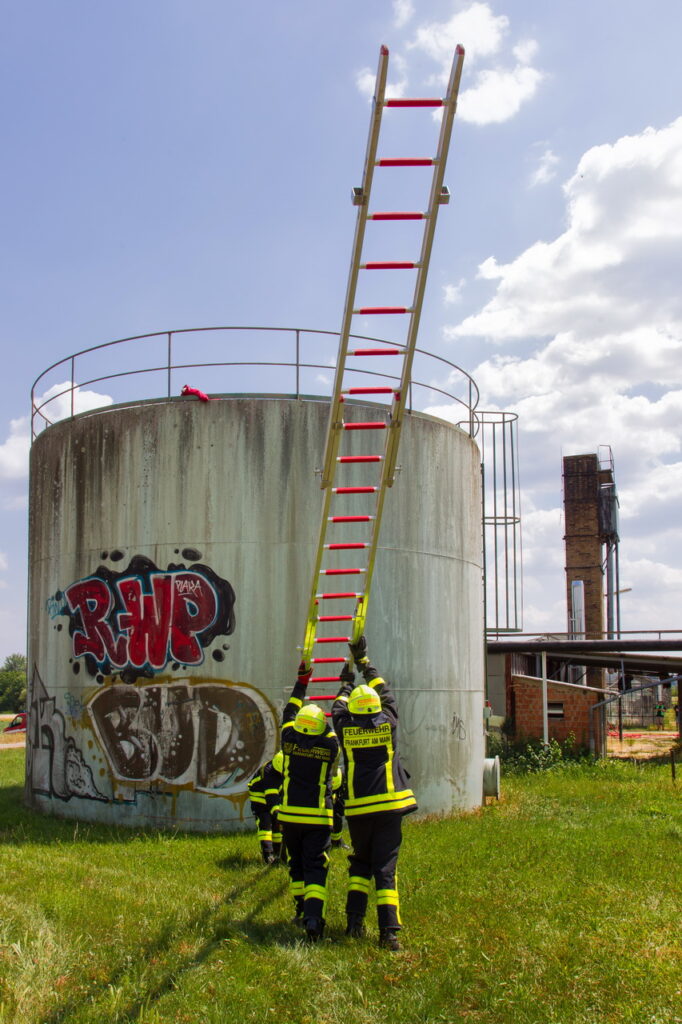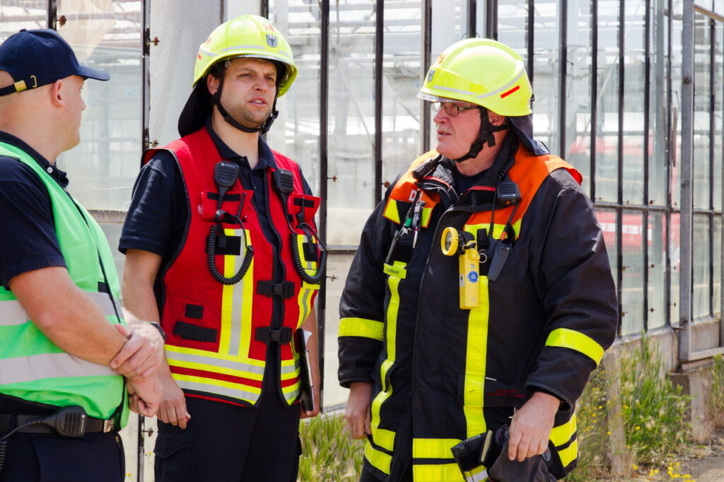Im Übungsszenario kam es bei Wartungsarbeiten an der Heizzentrale der Gärtnerei zu einer Verpuffung, bei der nicht nur das Wartungspersonal verletzt wurde, sondern auch das Gebäude selbst und ein Nachbargebäude in Brand gerieten. Zwei Kinder, die einen neben dem Gebäude stehenden 8 Meter hohen Heizöltank als Aussichtsplattform nutzten, verletzten sich in Folge der Verpuffung und konnten den Tank nicht mehr selbständig verlassen.