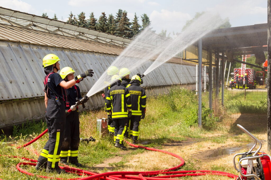Im ländlich geprägten Frankfurter Norden gibt es im Gegensatz zur Kernstadt viele Liegenschaften und Areale, die nicht an ein zur Brandbekämpfung ausreichendes Hydrantennetz angeschlossen sind. Die Übung verschaffte den Einsatzkräften die Gelegenheit, nicht nur ein großes landwirtschaftliches Objekt im Einsatzbereich besser kennenlernen zu können, sondern auch das bei Wald- und Flächenbränden wichtige Erschließen von Löschwasserquellen im Gelände zu üben. Für die Gelegenheit, die Übung auf ihrem Gelände durchführen zu können, bedanken wir uns deswegen herzlich bei der Gärtnerei Kunna und unserem stellvertretenden Wehrführer Thomas Lohmann, der federführend bei der Planung beteiligt war!