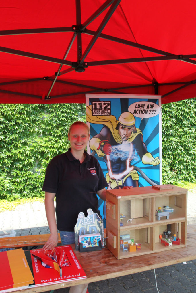 Am Infostand konnten sich unsere Besucher über Brandschutz sowie unsere Mitmach-Angebote für Mini- und Jugendfeuerwehr, aber natürlich auch für unsere Einsatzabteilung informieren. Die Minifeuerwehr bastelte zusammen mit den Kindern kleine Feuerlöscher, die mittels Kohlenstoffdioxid ein brennendes Teelicht löschen konnten.