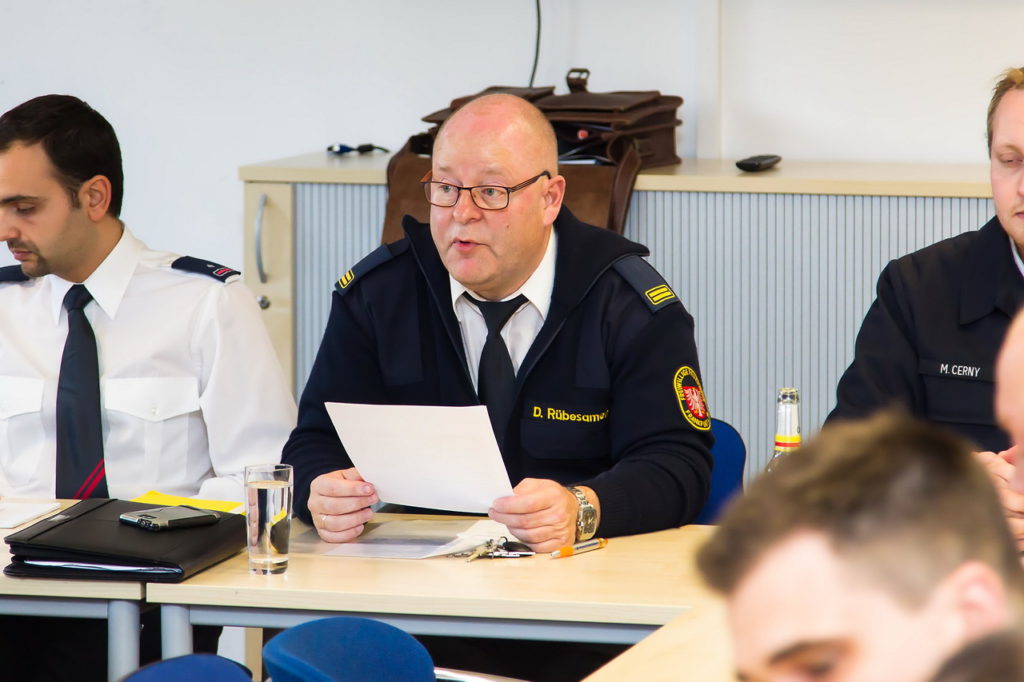 Dirk Rübesamen eröffnete die Veranstaltung pünktlich um 18:30 Uhr und begrüsste alle Anwesenden, unter denen sich auch die stellvertretenden Stadtbrandinspektoren Torsten Greiff und Heiko Horvarth sowie Arno Zinngrebe von der Branddirektion befanden. In seinem letzten Bericht als Wehrführer der Freiwilligen Feuerwehr Nieder-Erlenbach informierte er über die Einsätze, Veranstaltungen und Aktionen des vergangenen Jahres. Abschließend bedankte er sich für die Unterstützung, die er von vielen Seiten zwischen 2008 und 2016 in seinem Amt als Wehrführer erfahren hat.