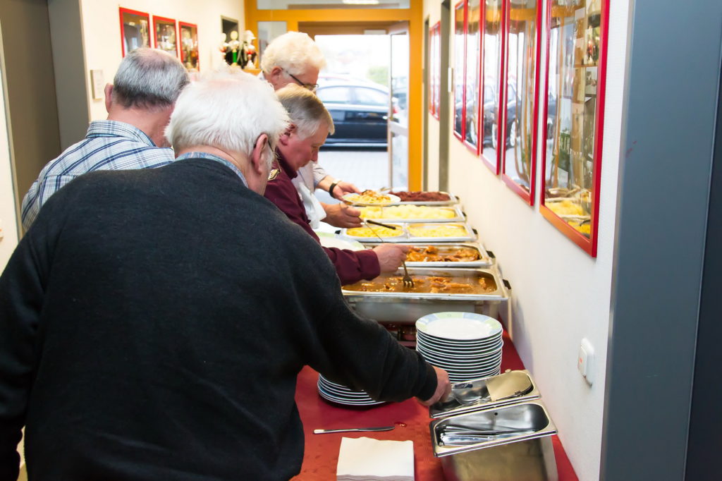 Dirk Rübesamen beließ es nicht nur bei einem verbalen Dankeschön, sondern legte kulinarisch nach. So kamen alle Besucher der Jahreshauptversammlung in den Genuß von Braten, Knödeln, Spätzle und Rotkraut, das er als „Abschiedsessen“ zubereitet hatte.