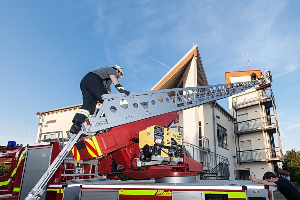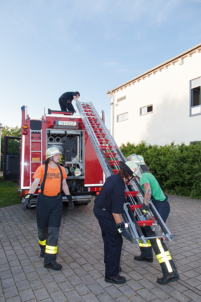 (gm) Am vergangenen Donnerstag stand das Thema „FwDV 10 – Tragbare Leitern“ auf dem Ausbildungsprogramm der Einsatzabteilung. Die Übung wurde dieses Mal nicht in Nieder-Erlenbach abgehalten, sondern in Karben. Neben dem gemeinsamen Grillen nach der Übung mit der Freiwilligen Feuerwehr Karben-Mitte machte die Tatsache, dass mit der Karbener Drehleiter geübt werden konnte, diese Übungsveranstaltung für die Nieder-Erlenbacher Feuerwehrleute zu einem besonderen Abend.