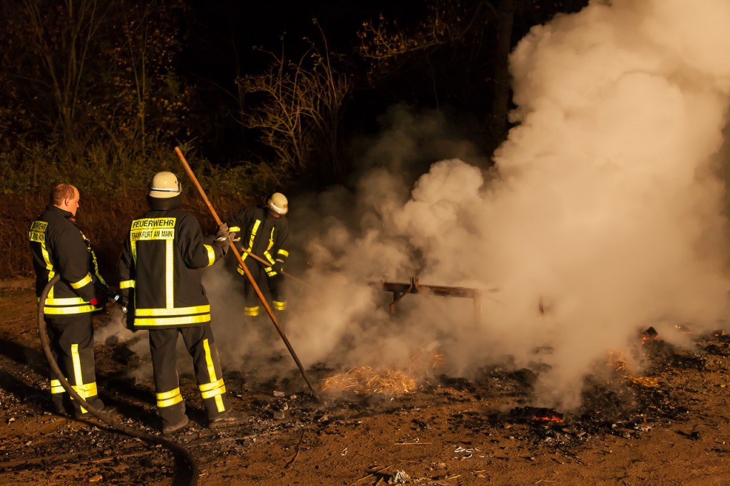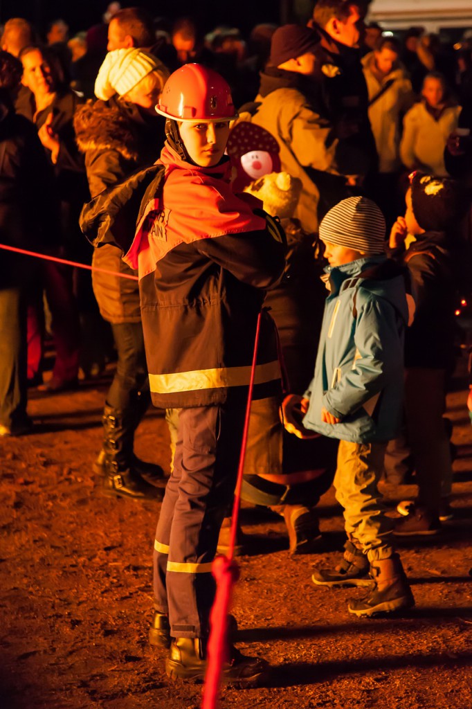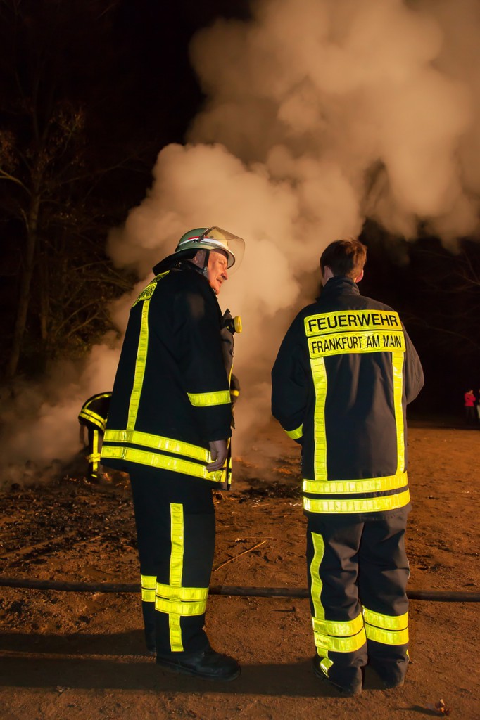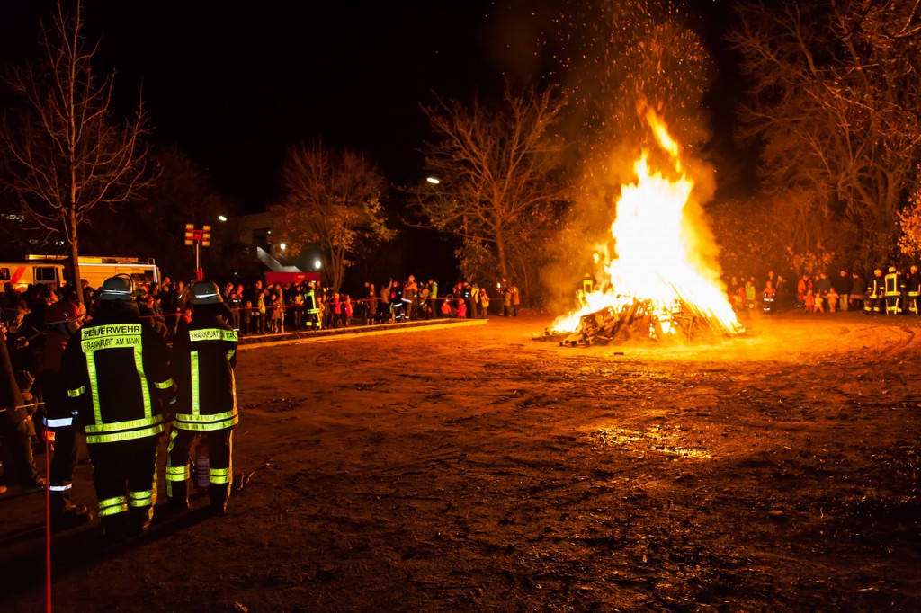 Die Nieder-Erlenbacher Freiwillige Feuerwehr entzündete kurz nach 18 Uhr das Martinsfeuer neben dem Bolzplatz am Bürgerhaus, dem Endpunkt des Martinsumzuges. Das Martinsfeuer wärmte sowohl die Großen als auch die Kleinen, eine Kapelle spielte dazu Martinslieder. Die Mitglieder der Jugendfeuerwehr hatten mit einer Leine eine Sperrzone markiert, damit niemand dem mächtigen Feuer zu nahe kam.