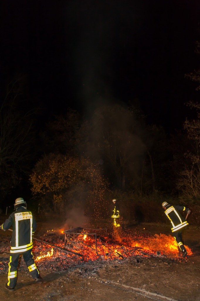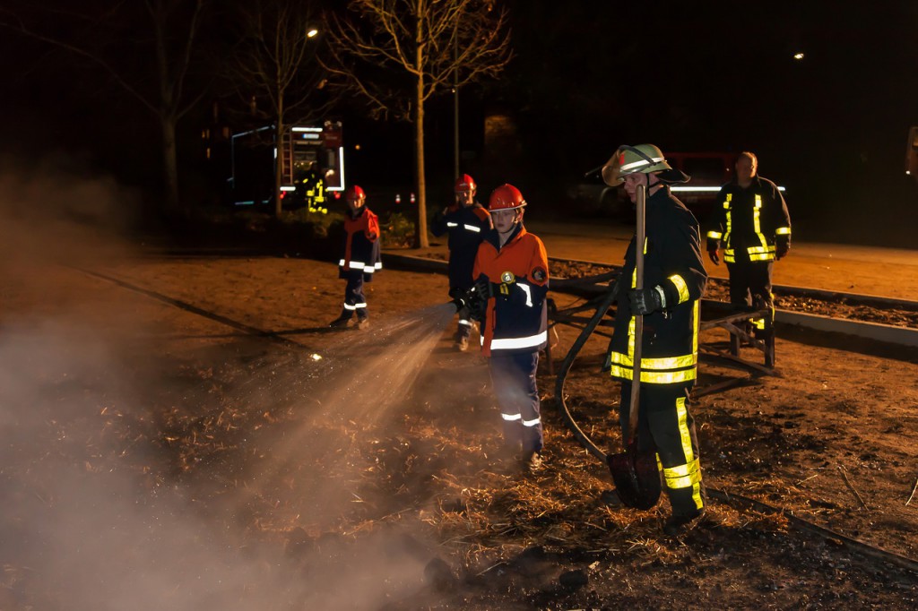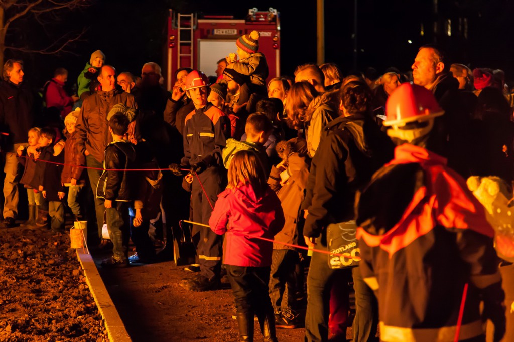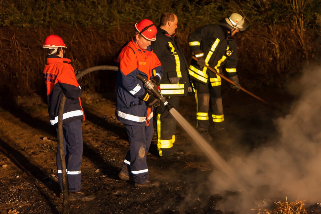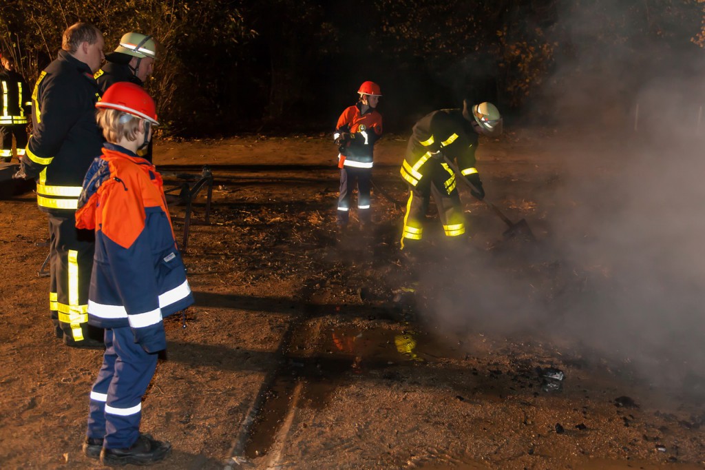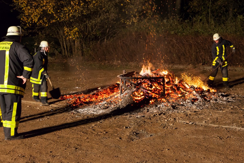 Auch die Mitglieder unserer Jugendfeuerwehr freuten sich schon darauf, die Reste des Martinsfeuers später löschen zu können. Dies geschah unter Verwendung des Schnellangriffs in ausgesprochen professioneller Weise, sodass wir gegen 20:30 Uhr nach einem sehr schönen Abend mit einem tollen Martinsfeuer wieder einrücken konnten.