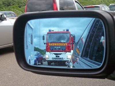 - Lassen Sie die Rettungsgasse offen, meistens werden nach der Durchfahrt des ersten Fahrzeugs noch weitere Fahrzeuge von Polizei, Rettungsdienst und Feuerwehr nachkommen.