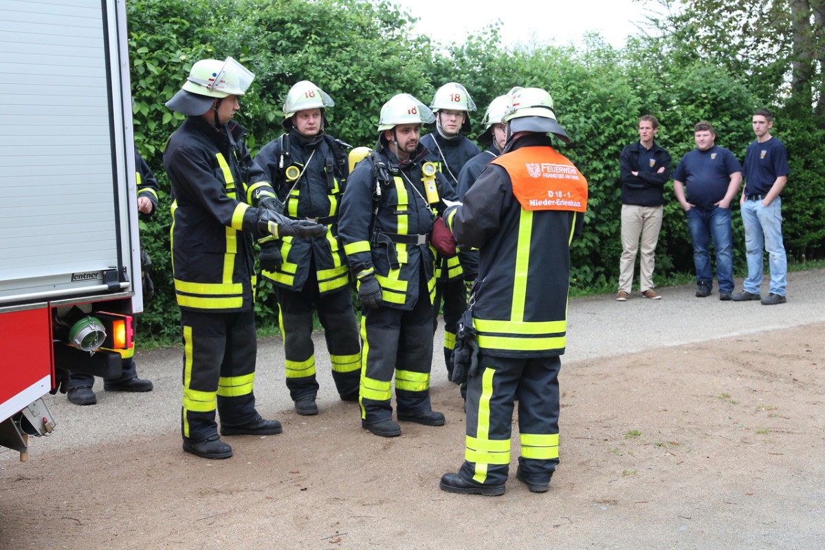 Zur Übung konnten wir vier Kameraden der Freiwilligen Feuerwehr Karben als Beobachter begrüßen, die sich anschließend noch unser Feuerwehrhaus ansahen.