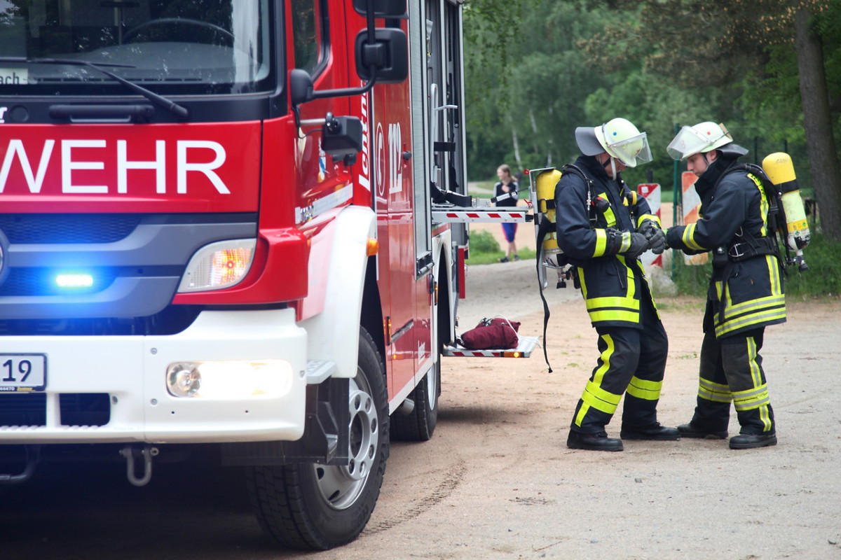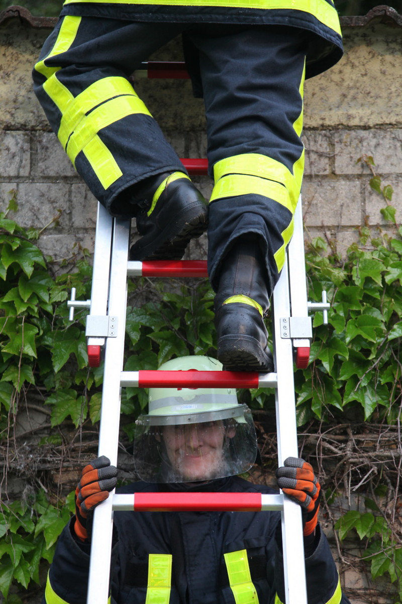 Angenommenes Szenario war ein Brand im Hauptteil des Schützenhauses. Zwei Anwesende konnten sich nach Ausbruch des Feuers gerade noch auf die Schießbahn retten, waren dort aber zwischen den hohen Wänden eingesperrt. Als die Feuerwehr eintraf, machten sie sich laut bemerkbar. Während vom ersten Fahrzeug aus die Menschenrettung übernommen wurde, begannen die weiteren Einsatzkräfte einen Löschangriff mit zwei Rohren auf das brennende Gebäude. Über zwei Steckleiterteile wurde die Wand der Schießbahn überwunden und ein Trupp begab sich zu den Eingeschlossenen. Glücklicherweise waren diese nicht verletzt und konnten sich mit Hilfe der Einsatzkräfte über die Leiter retten. Währenddessen gelang es auch, den Brand des Hauptgebäudes erfolgreich zu bekämpfen. Nach dem „Feuer aus!“ wurde das Gebäude noch belüftet, um die Reste des (Nebelmaschinen-) Rauchs aus den Räumlichkeiten zu entfernen.