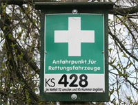 Bitte bedenken Sie, dass es hilfreich sein kann, nach Absetzen eines Notrufs an diesem Schild auf das Eintreffen der Rettungskräfte zu warten, um diese einweisen zu können. Folgen Sie immer den Anweisungen des Einsatzbearbeiters am Notruf.